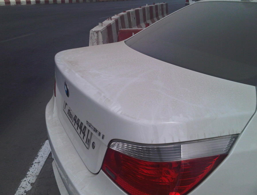 note the layer of dust (sand) on the car parked near where I have to cross the
