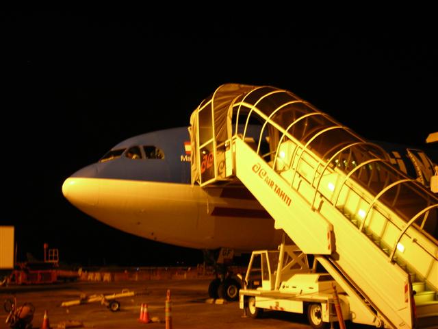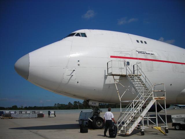 Houston, Texas. We arrive at the aircraft (N496MC) and the inbound crew hasn't opened the door yet.