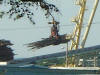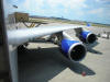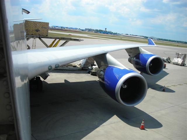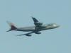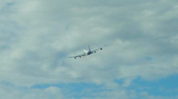 After we checked into our hotel and changing our clothes we were to meet in the lobby. While walking to the lobby I heard an airplane flying nearby (hotel not too far from airport) and it had that beautiful whine of the large diameter fan of a GE engine. I could also tell there where four of then humming and not two. I thought to myself, "wow, must be a big one leaving for somewhere". Then it dawned on me that we were the only big thing in town and the light came on in my head that it was our plane with a new crew aboard. I was on the wrong side of the building and ran to catch the photo (enlarged and grainy as it was too far away) as the plane turned towards the southwest and set course for Sydney.