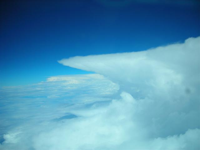 After we left Hunstville (HSV) behind, we crossed the Atlantic and headed for Luxembourg (LUX). I immediately deadheaded to Amsterdam (AMS) on a KLM Cityhopper Fokker F50 SuperFriendship for a short overnight and and then a longhaul flight from Amsterdam to Los Angeles (LAX) on a brand new KLM Boeing 777-200ER (christened: The City of Machu Pichu) for another short overnight. I joined another crew for a hop down to Papeete (PPT) on the French Polynesian Island of Tahiti. Nearing the equator and encountering the Inter Tropical Convergence Zone (ITCZ) where the northern and southern hemisphere opposing headwinds converge (very turbulent) we encountered and circumnavigated that nasty storm in the photo below.
