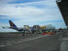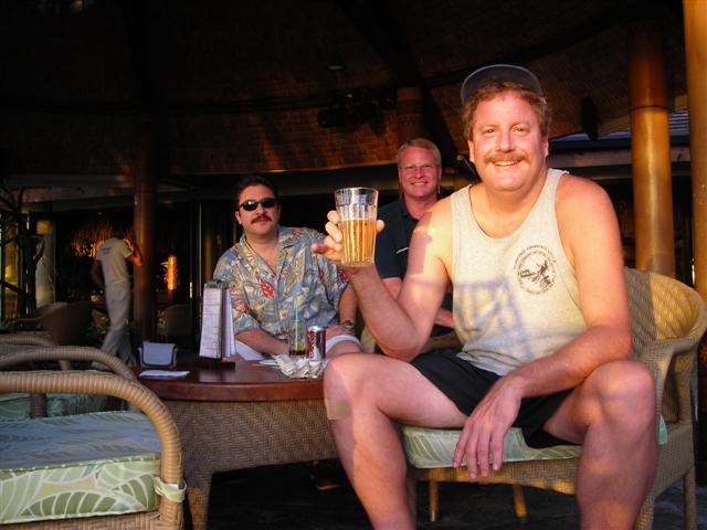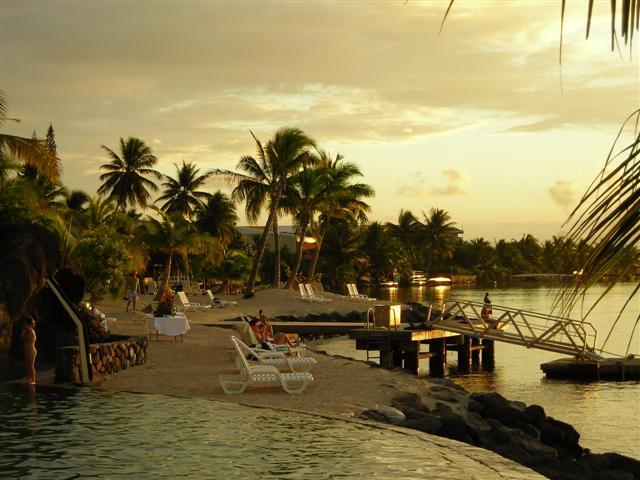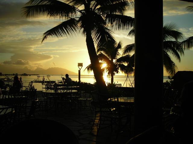 The following photos were taken at The Sheraton Tahiti the evening of arrival. Pictured, hard at work, in the foreground, Captain John Kearins and in the background Captain Tom Holman and myself. John departed later that night (deadheading to Tokyo and onward to Hong Kong) The company forgot to buy Tom's and my tickets to LAX for the next morning so we just had to stay longer so there are some photos of the next day too. Click on any of the thumbnail pictures to make them larger.